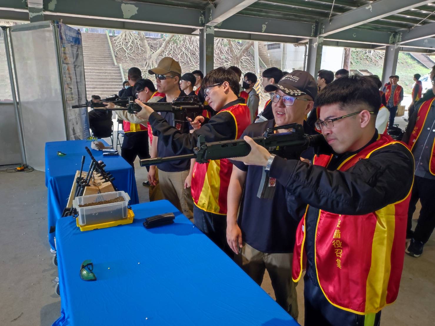 嘉義縣替代役男實彈射擊課程中以多功能25宮格電子靶安排競速&隨機等多種模式驗證提昇訓練成效這次協會幹部精進課程模組後上納入競技的元素第二梯次參訓役男許多皆達到合格射手標準更值得肯定的是競賽中還打出,高水準成績讓訓場充滿踴躍參與訓練情境