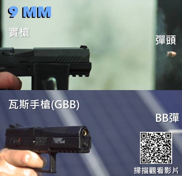 最主要的差異在「GBB手槍」無論外觀做的再怎麼像、重量再一致、瓦斯氣量再足、音爆聲再紮實,在某種程度上,還是無法完全取代實槍訓練,尤其是射擊後座、彈道跟射擊精準度表現等方面。也因此,GBB手槍打的好,實槍不一定打得好,而且實槍往往還會放大你的缺點,使得你的彈著更散,偏離的更加明顯。