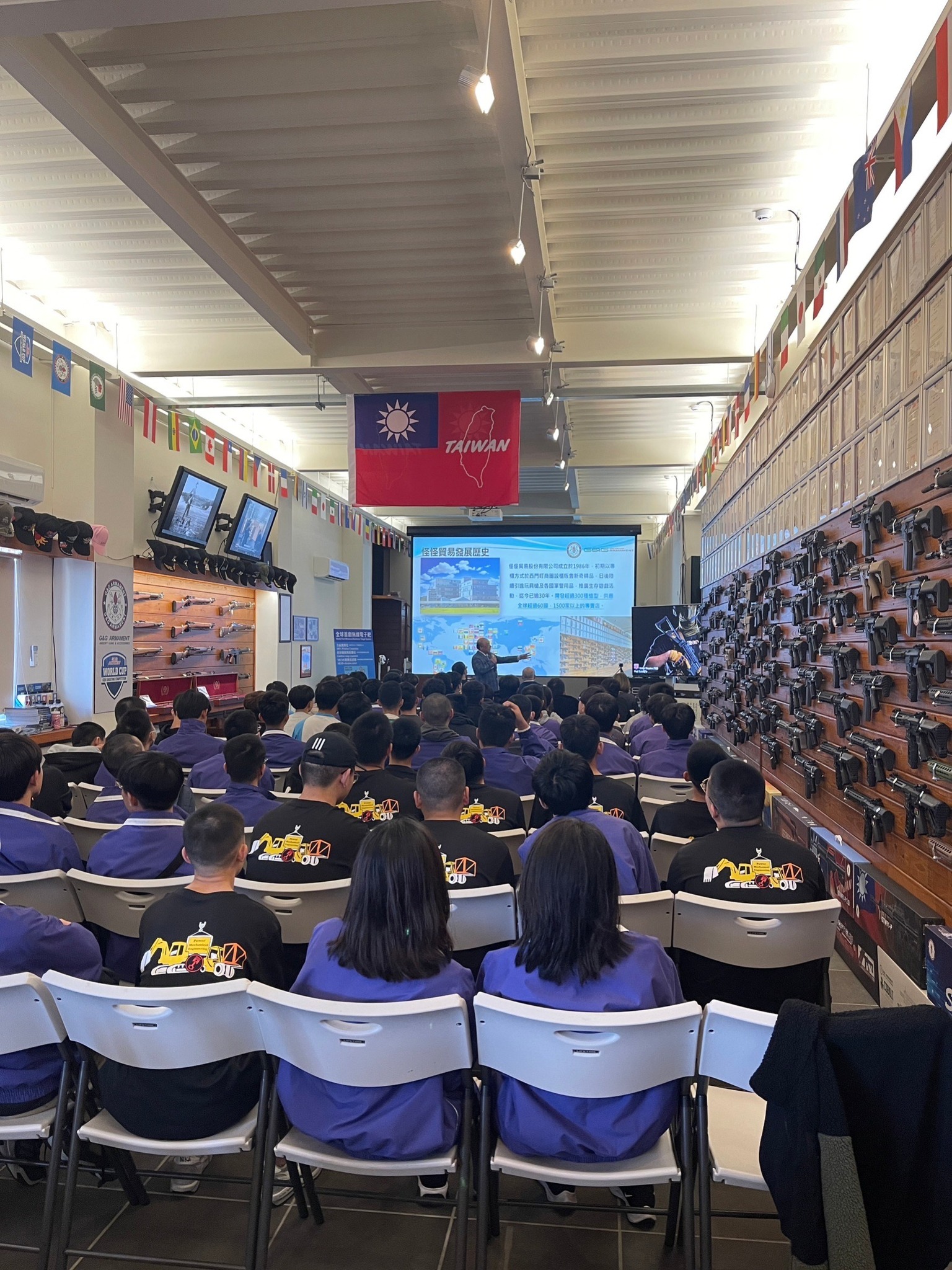 國立台北科技大學附屬桃園農工高級中等學校動力機械科師生共計78人至怪怪貿易進行參訪,除了分享我司的行銷理念以及拓展經濟的MIT館,還搶先了解最新的手槍專利,也體驗新型電子靶。